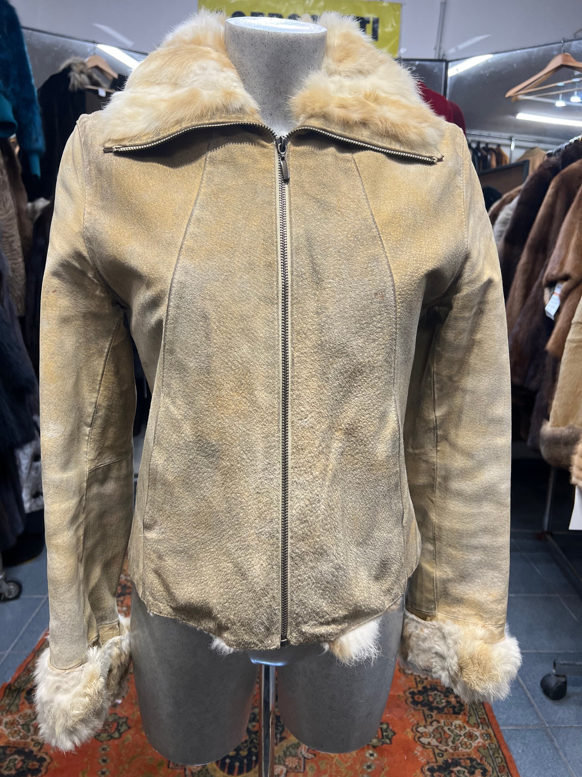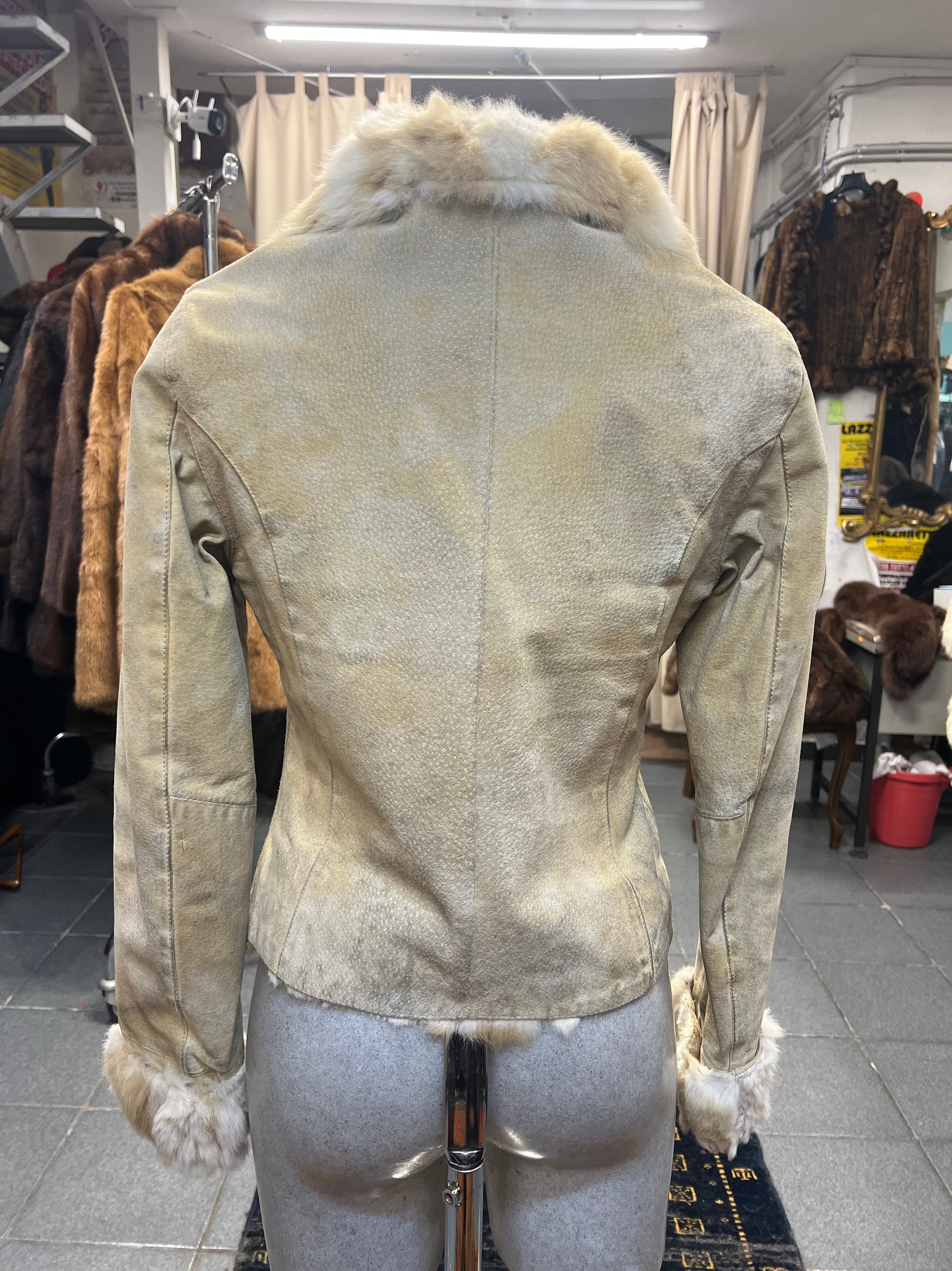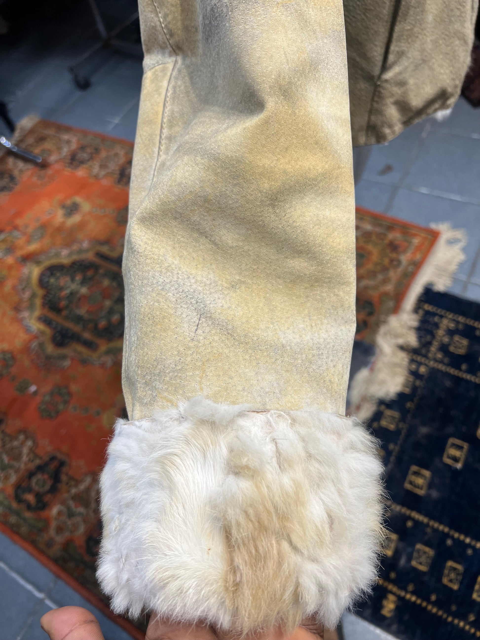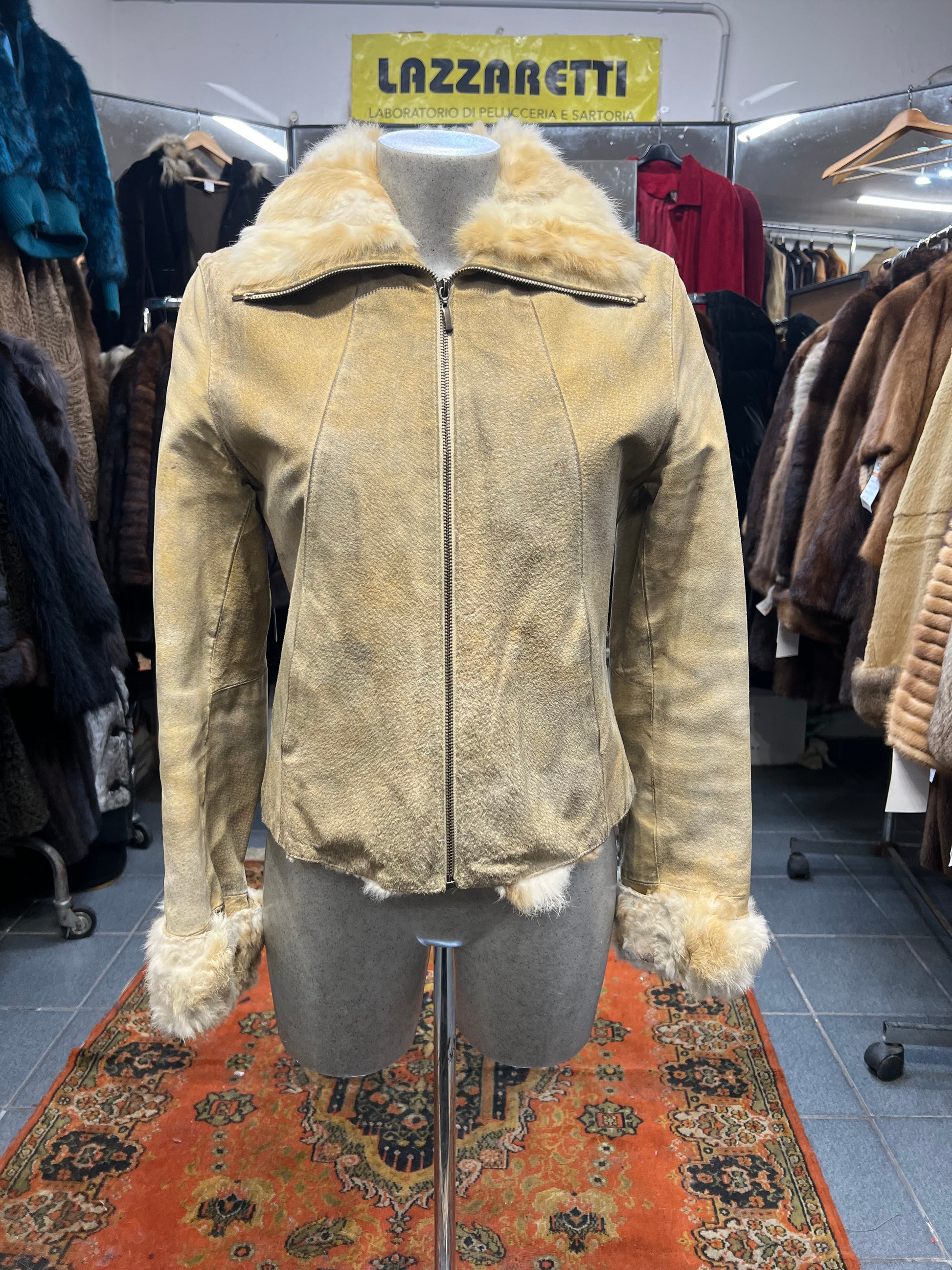 Cape vera pelle du doublure et poignée en fourrure